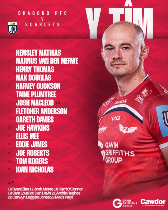 Scarlets head coach Dwayne Peel said: “The result on Boxing Day was disappointing for us all. We have had to lick our wounds and it’s been important to recover well and turn our focus to the Dragons. The games are coming thick and fast and this is another important game and another tough game for us. They are going well at the moment and we have to make sure we go to Rodney Parade with a spark and full of energy.”