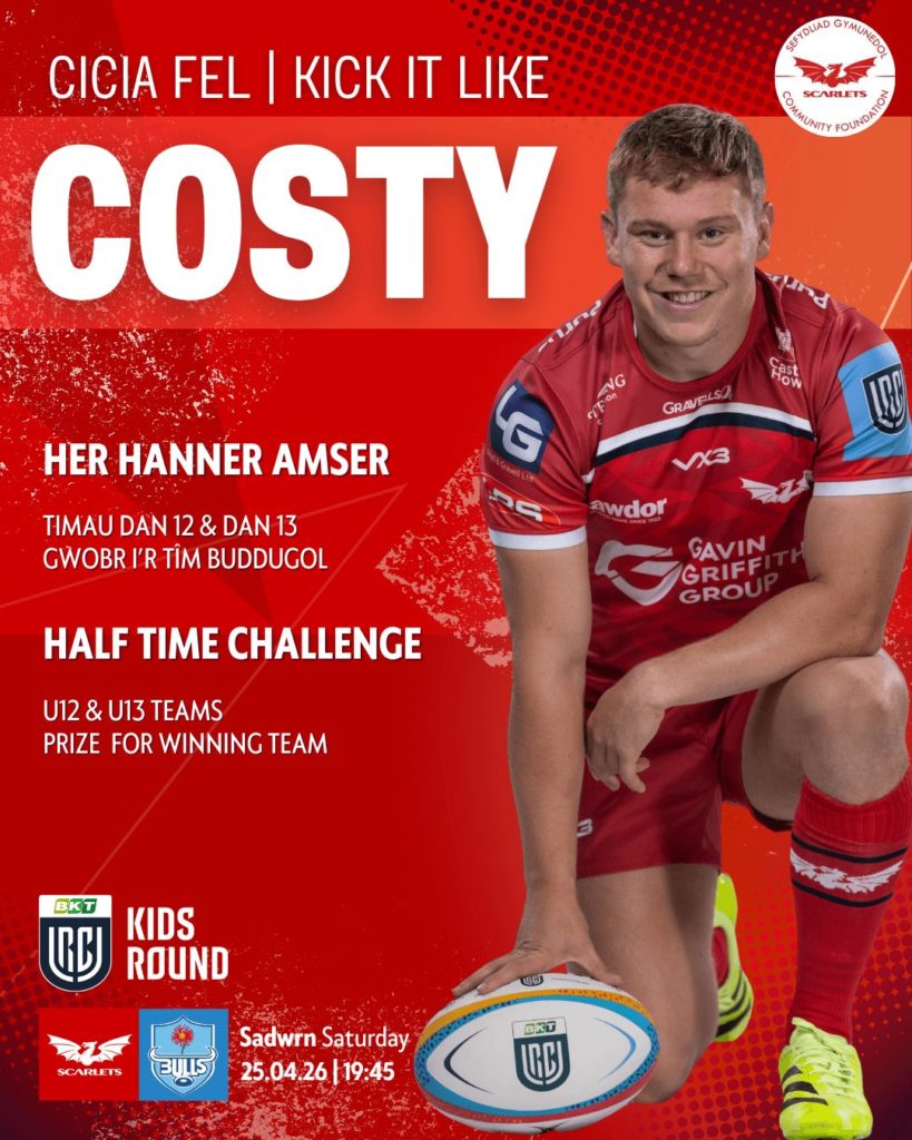 Attention young rugby stars! Scarlets are giving U12s and U13s teams the chance to ‘Kick It Like Costy’ and show off their kicking skills in our special half-time challenge during the Scarlets v Vodacom Bulls match.