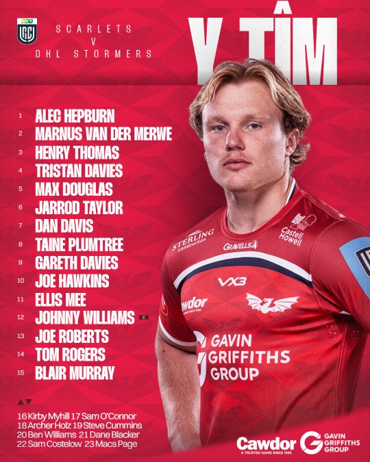 Archer Holz, who made his comeback from illness for Carmarthen Quins last week, returns to the match-day 23 as tight-head cover, while back-rower Ben Williams is set for his first appearance of the URC campaign. Osian Williams, who was due to make his URC debut against Connacht, misses out because of an ankle injury picked up in training this week.