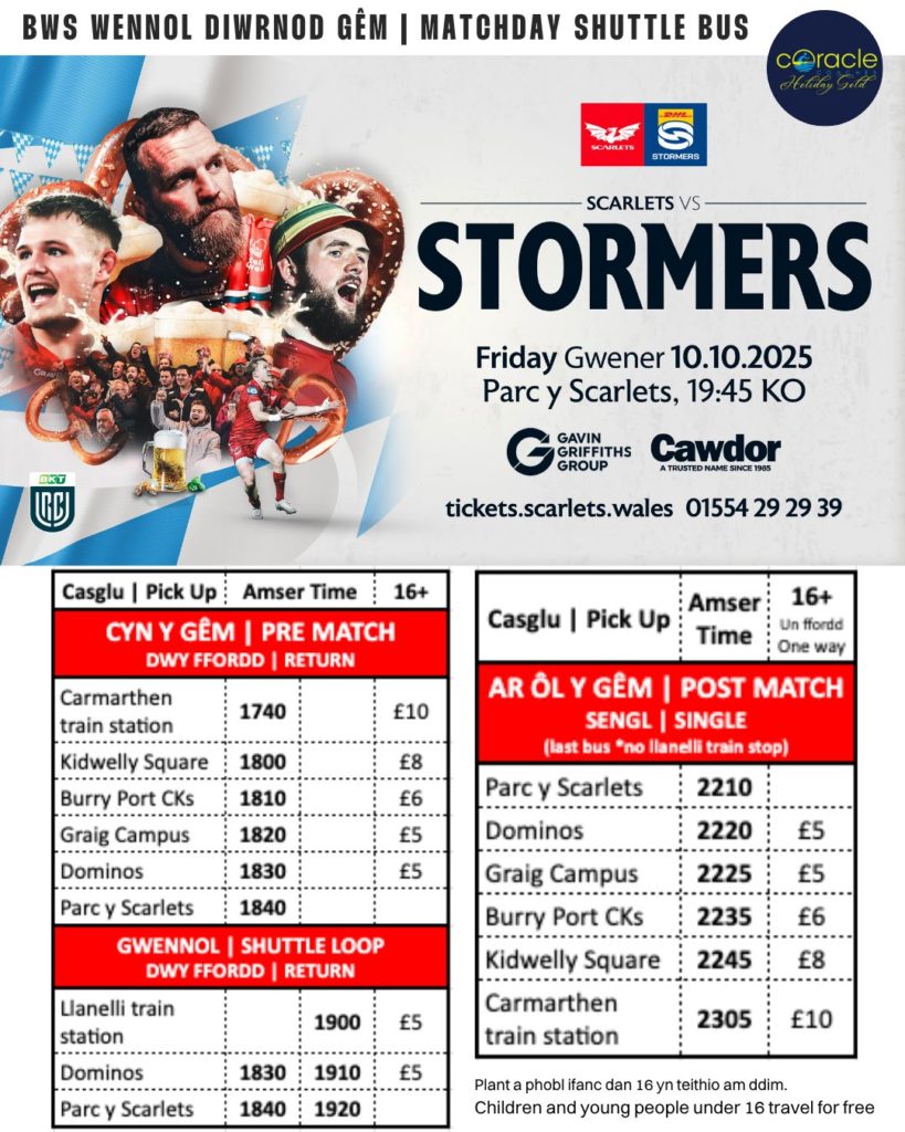 • 18:15 Signing session with Scarlets players at Clwb Cochyn Corner